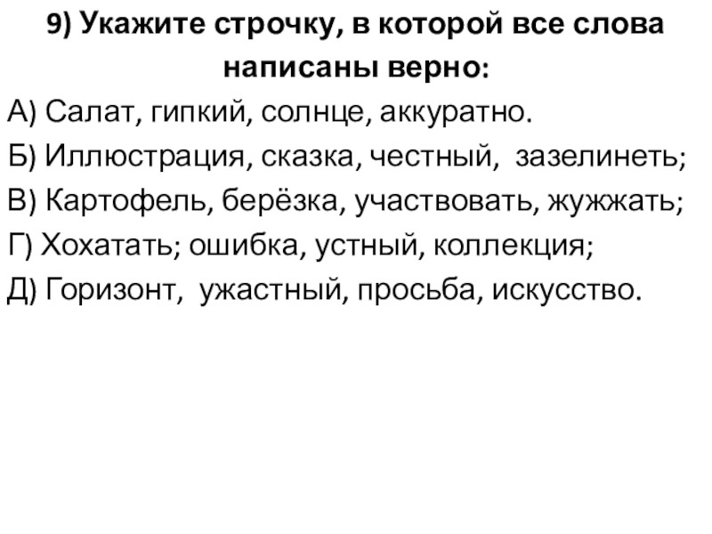 Слайд 119) Укажите строчку, в которой все слова