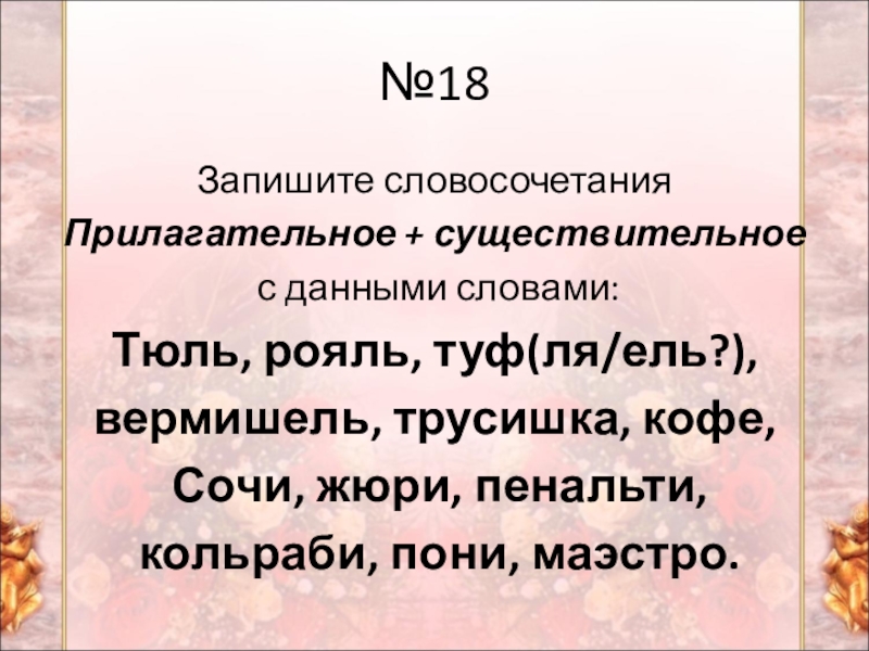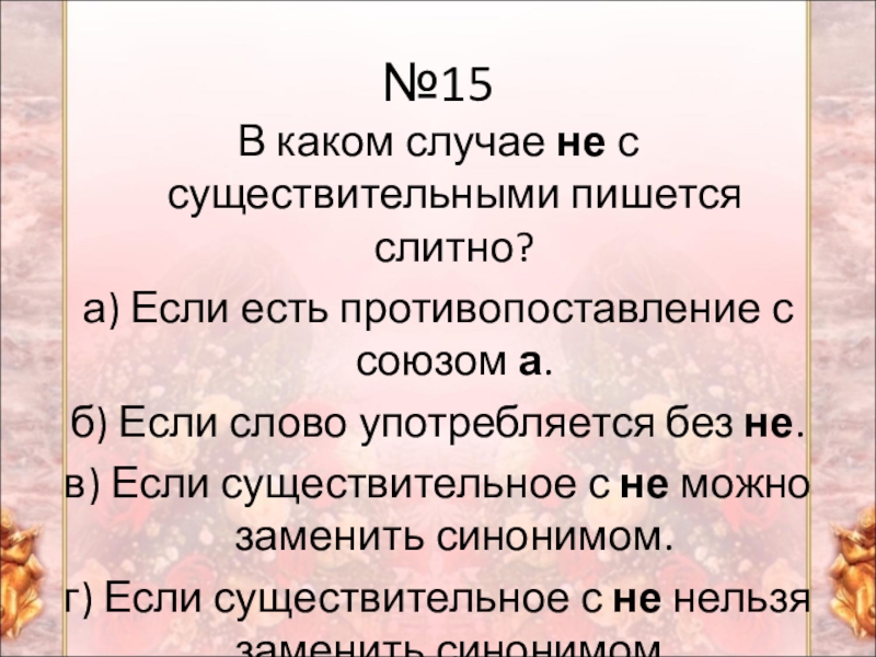 Слайд 1Контрольная работа по теме «Имя существительное»
