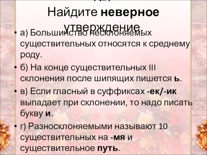 г) Разносклоняемыми называют 10 существительных на -мя и существительное путь.