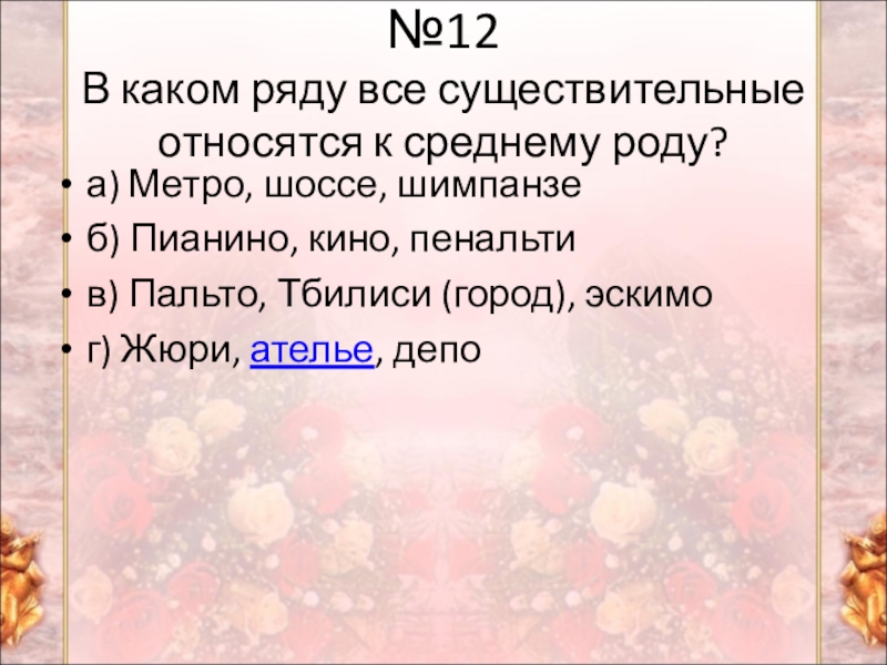 а) Большинство несклоняемых существительных относятся к среднему роду.