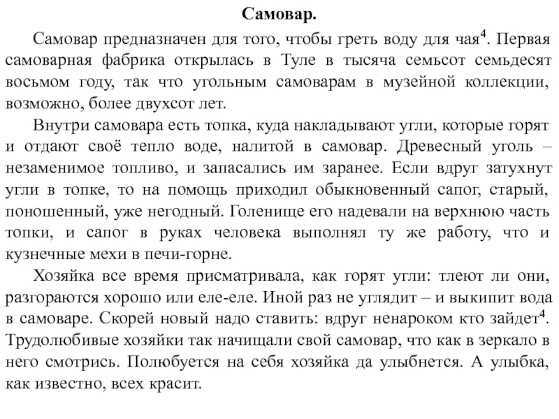 Самовар предназначен для того, чтобы греть воду для чая4. Первая самоварная
