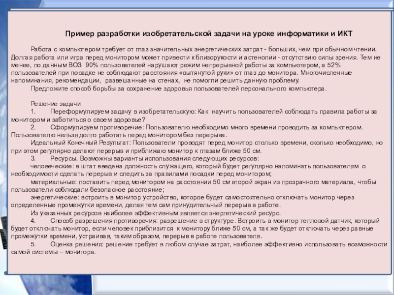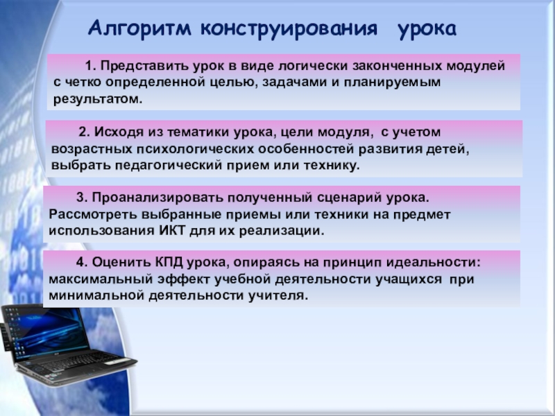 3. Проанализировать полученный сценарий урока. Рассмотреть выбранные приемы или техники на предмет использования ИКТ для их реализации.
