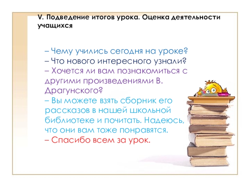 Слайд 19V. Подведение итогов урока. Оценка деятельности учащихся