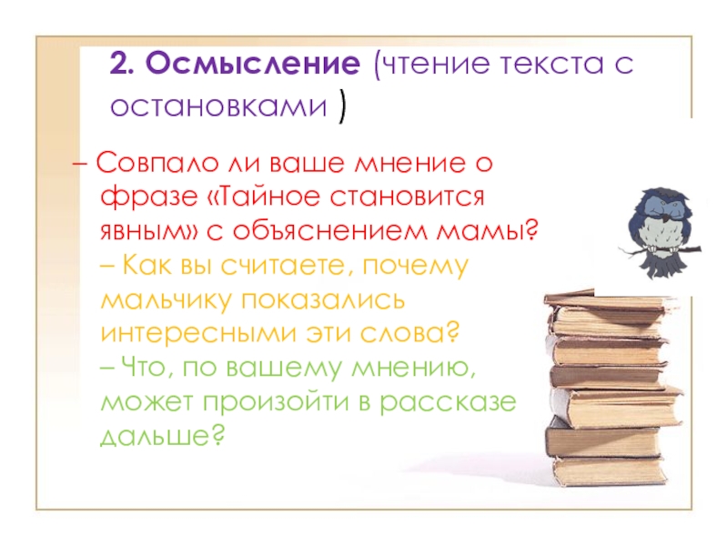 Слайд 102. Осмысление (чтение текста с остановками )