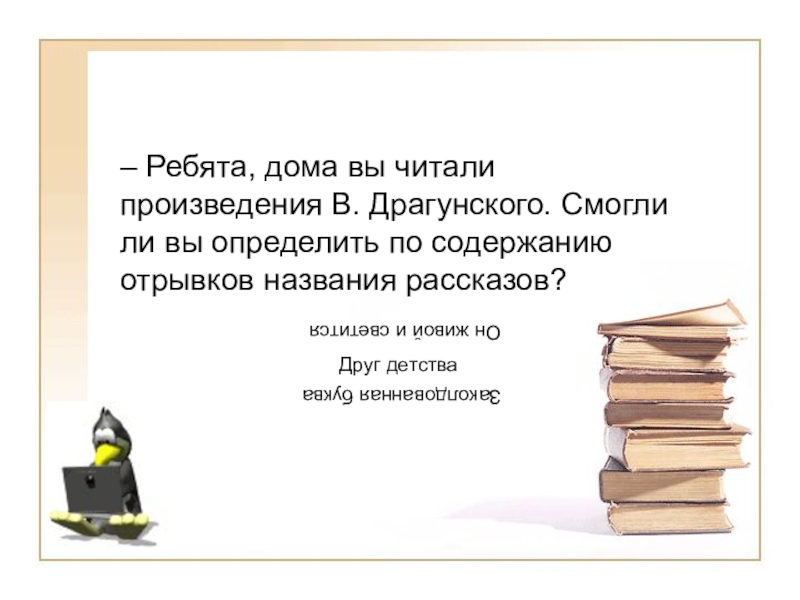 Слайд 7– Ребята, дома вы читали произведения В. Драгунского. Смогли ли