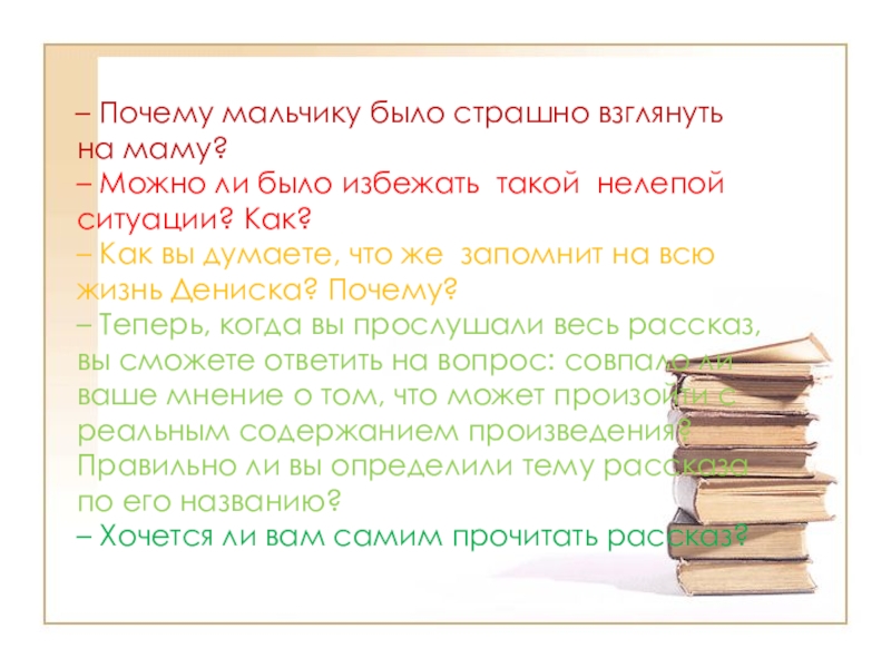 Слайд 15 – Почему мальчику было страшно взглянуть на маму?