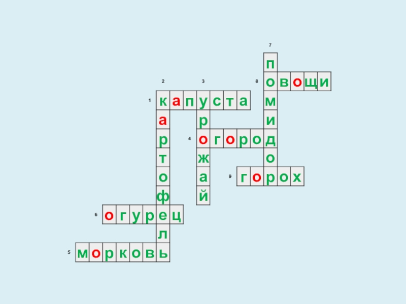 Презентация, доклад на тему Кроссворд на тему Словарные слова. Овощи