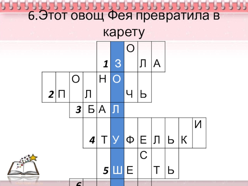 Презентация, доклад на тему Кроссворд по сказке Золушка