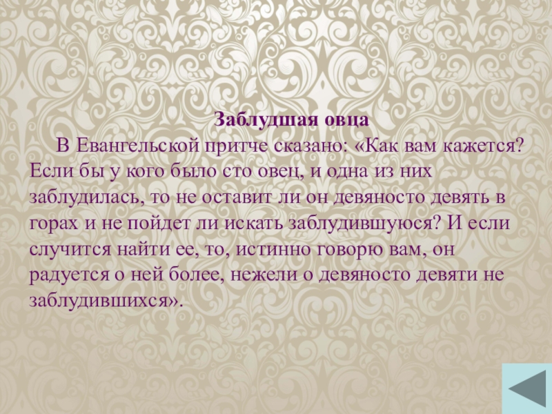 В Евангельской притче сказано: «Как вам кажется? Если бы у