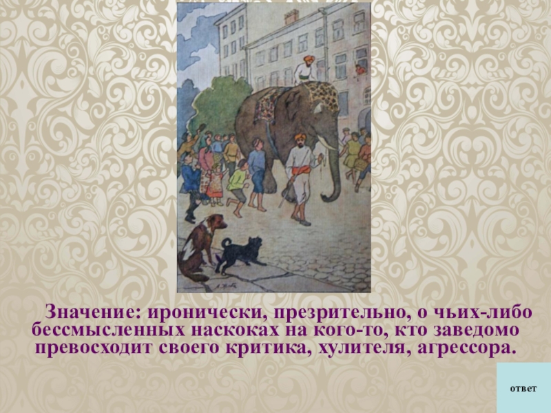 Ай, Моська! Знать, она сильна, что лает на Слона!