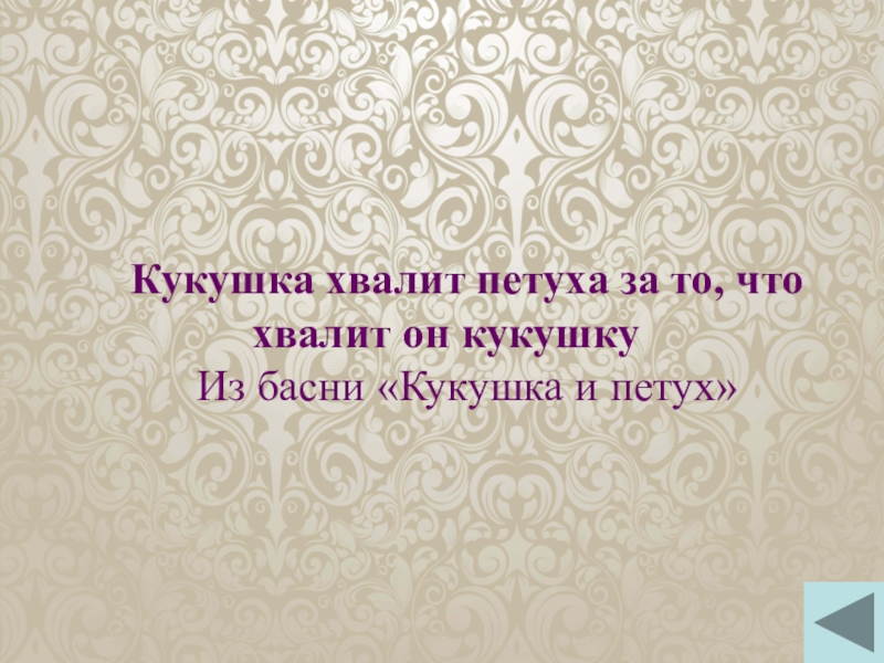 Кукушка хвалит петуха за то, что хвалит он кукушку