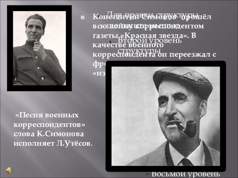 «Песня военных корреспондентов» слова К.Симонова исполняет Л.Утёсов.