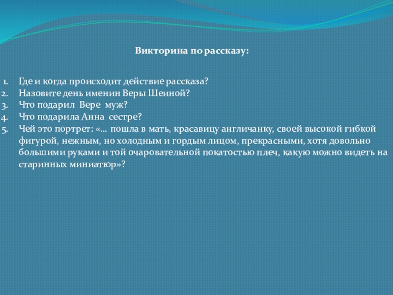 8. Чей это портрет: «… очень бледный, с нежным девичьим лицом, с голубыми глазами и упрямым детским подбородком с ямочкой посередине; лет ему, должно быть, было около тридцати, тридцати пяти»?