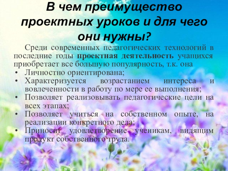 Слайд 5В чем преимущество проектных уроков и для чего они нужны?