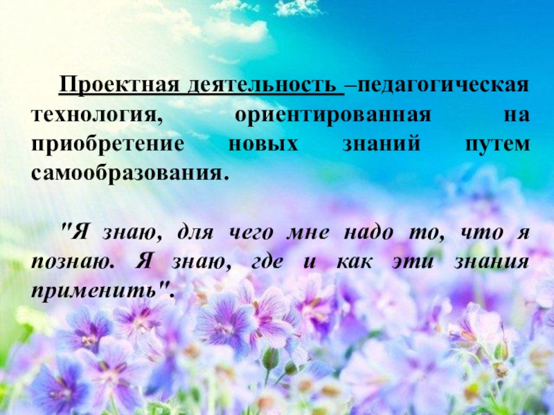 Слайд 4Проектная деятельность –педагогическая технология, ориентированная на приобретение новых знаний путем самообразования.