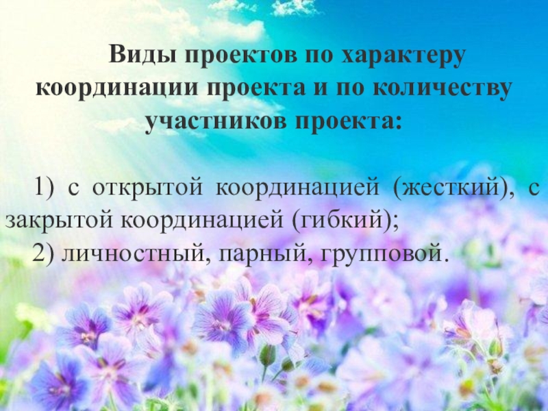 Слайд 14Виды проектов по характеру координации проекта и по количеству участников проекта:
