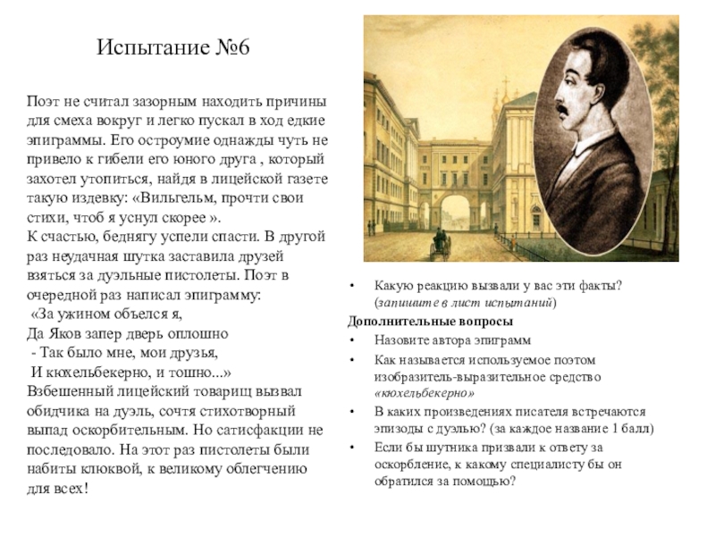 В каких произведениях писателя встречаются эпизоды с дуэлью? (за каждое название 1 балл)