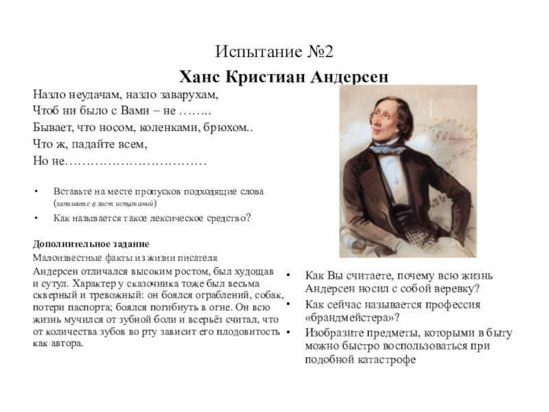 Как Вы считаете, почему всю жизнь Андерсен носил с собой веревку?