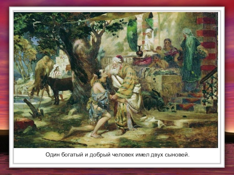 Слайд 3Один богатый и добрый человек имел двух сыновей.