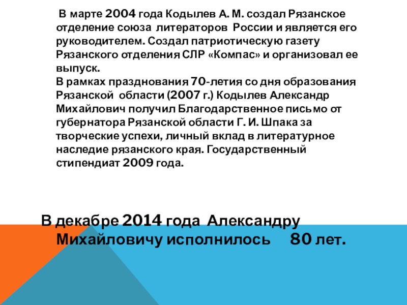 Слайд 14 В марте 2004 года Кодылев А. М.