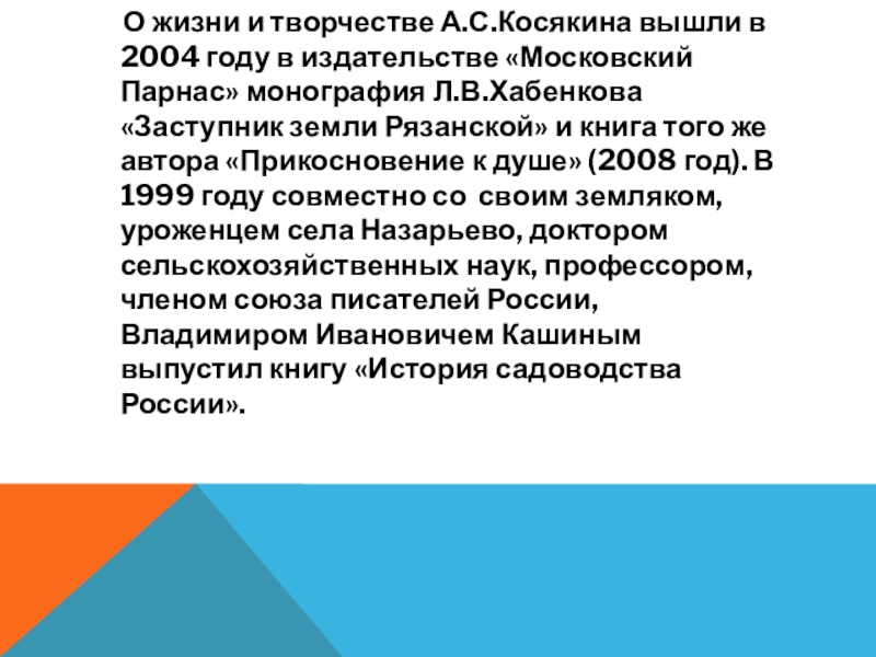 Слайд 20 О жизни и творчестве А.С.Косякина вышли в 2004