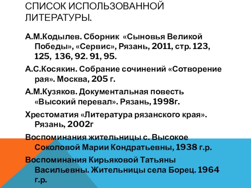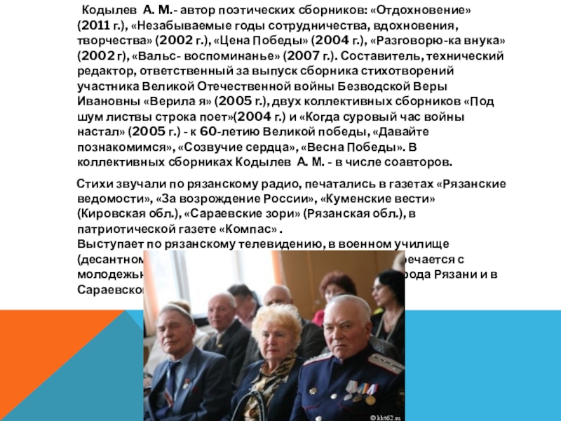А.М.Кодылев. Сборник «Сыновья Великой Победы», «Сервис», Рязань, 2011, стр.