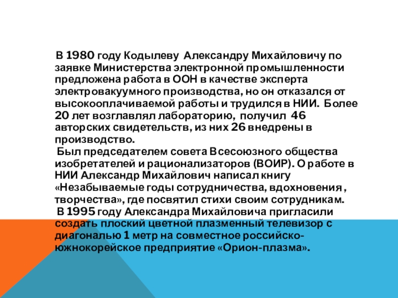 Слайд 10 В 1980 году Кодылеву Александру Михайловичу