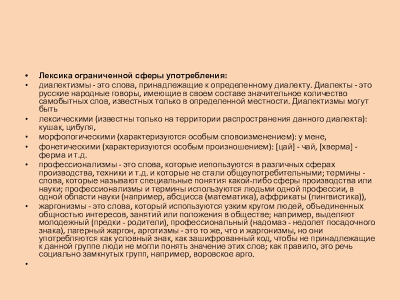 диалекту. Диалекты - это русские народные говоры, имеющие в своем составе значительное количество самобытных слов, известных только в определенной местности. Диалектизмы могут быть
