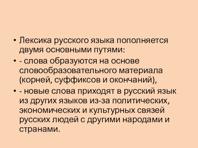 Слайд 5Лексика русского языка пополняется двумя основными путями: