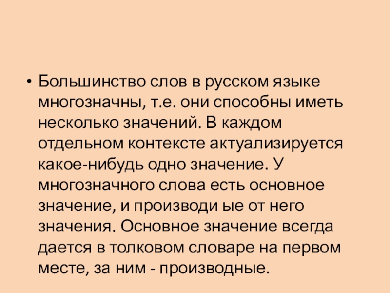 Слайд 8Большинство слов в русском языке многозначны, т.е. они способны иметь несколько
