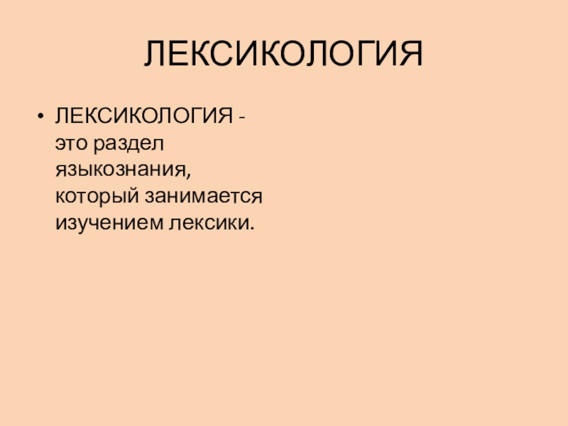 ЛЕКСИКОЛОГИЯ - это раздел языкознания, который занимается изучением лексики.