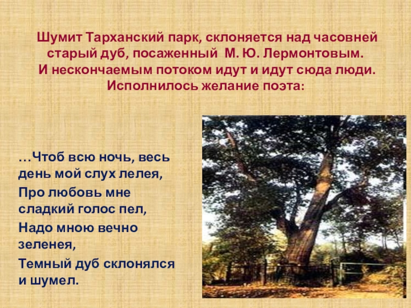 Шумит Тарханский парк, склоняется над часовней старый дуб,