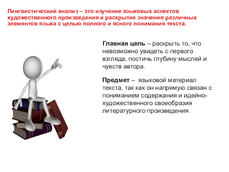 Лингвистический анализ – это изучение языковых аспектов художественного произведения и раскрытие значения различных элементов языка с целью полного и ясного понимания текста.