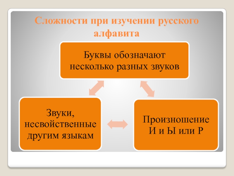 Слайд 3Сложности при изучении русского алфавита
