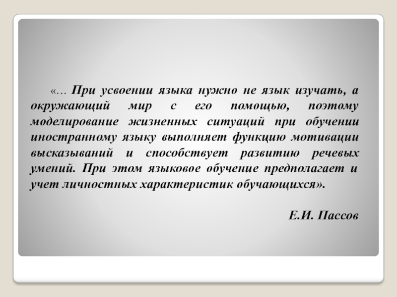 «… При усвоении языка нужно не язык изучать, а окружающий мир с его помощью, поэтому моделирование жизненных