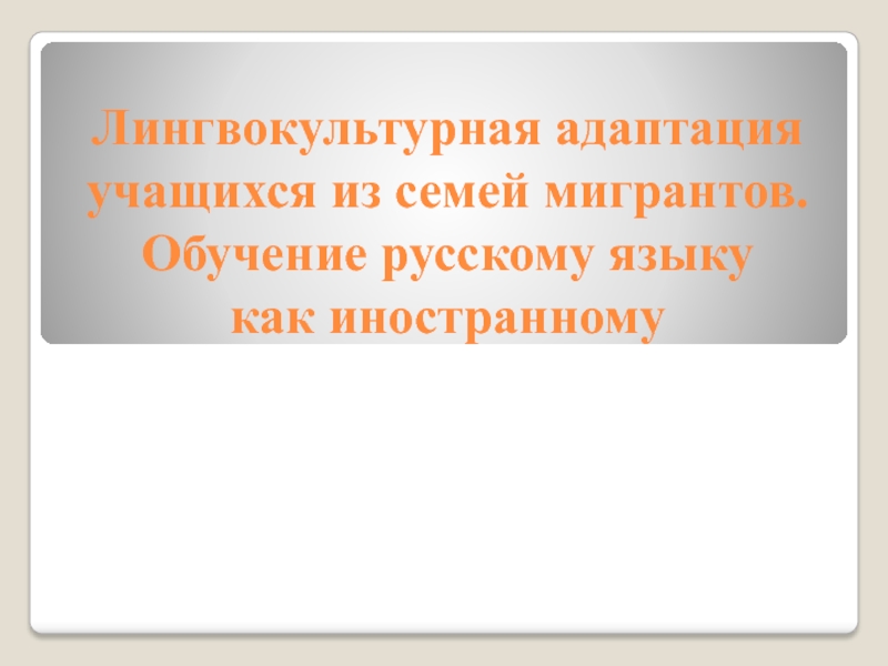 Презентация, доклад на тему Лингвокультурная адаптация учащихся из семей мигрантов. Обучение русскому языку как иностранному