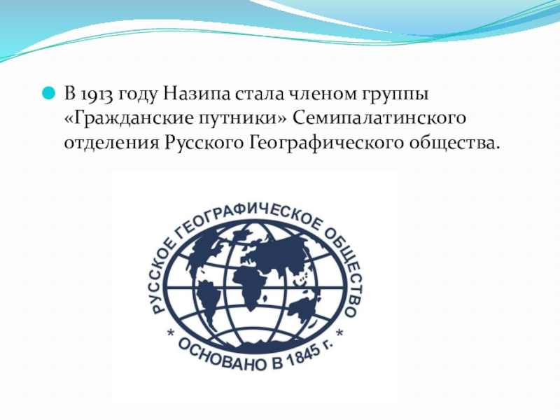 Слайд 5В 1913 году Назипа стала членом группы «Гражданские путники» Семипалатинского отделения