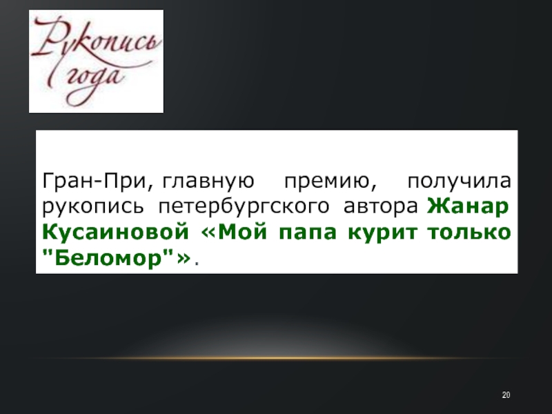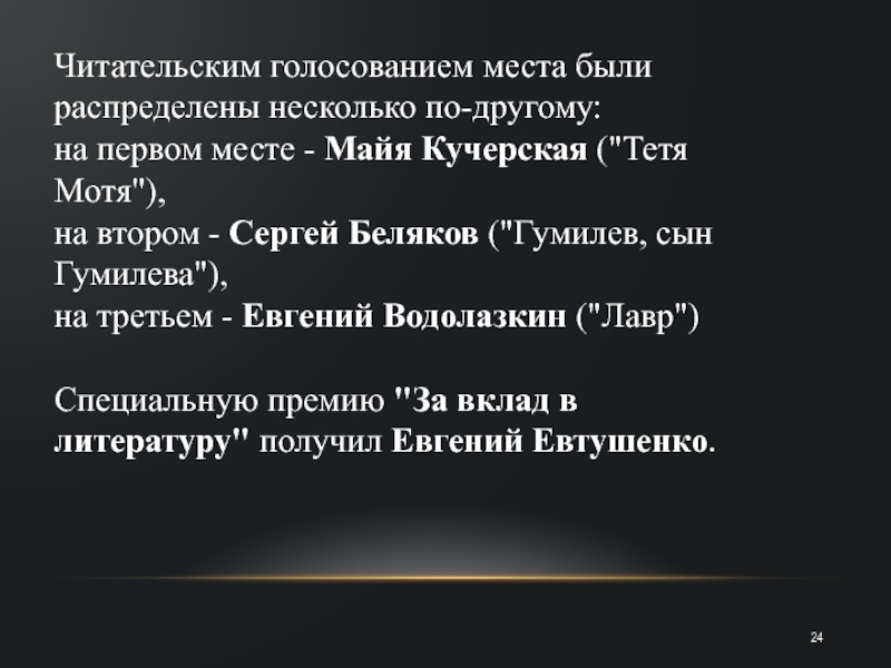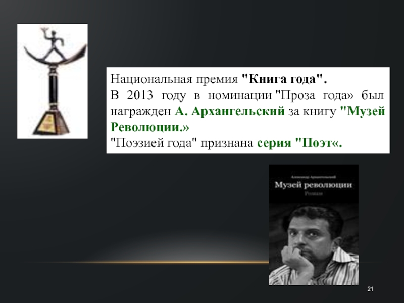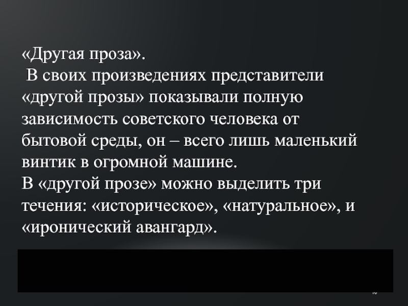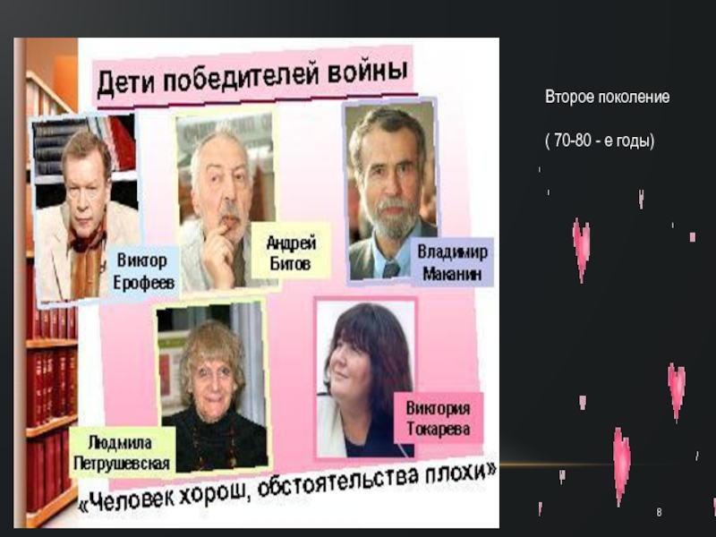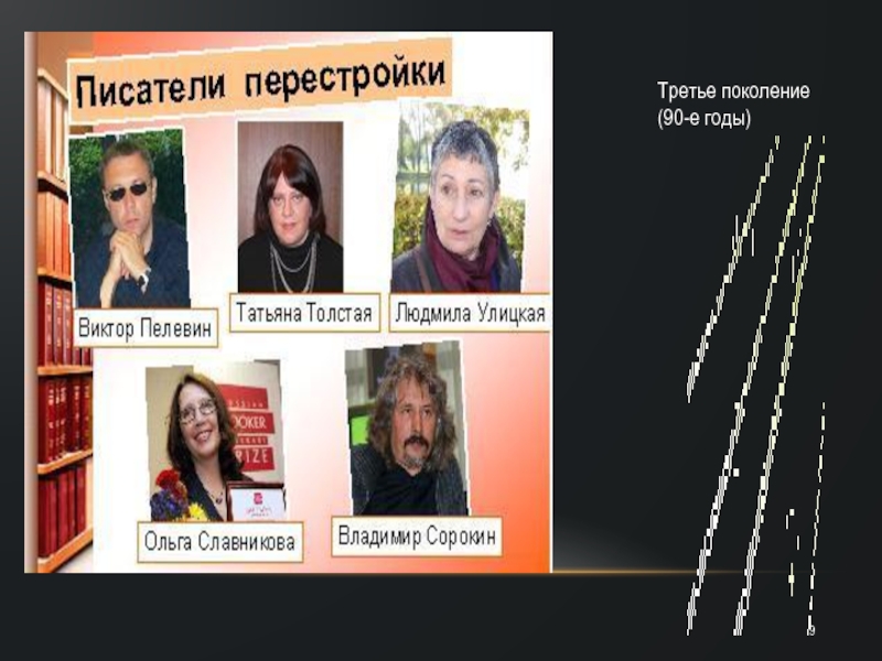 «Возвращённая литература»- произведения А. Солженицына «Архипелаг ГУЛАГ», Бориса Пастернака «Доктор Живаго», Михаила Булгакова «Собачье сердце», «Дети Арбата А. Рыбакова, проза И.Бабеля, А. Платонова и многих других.
