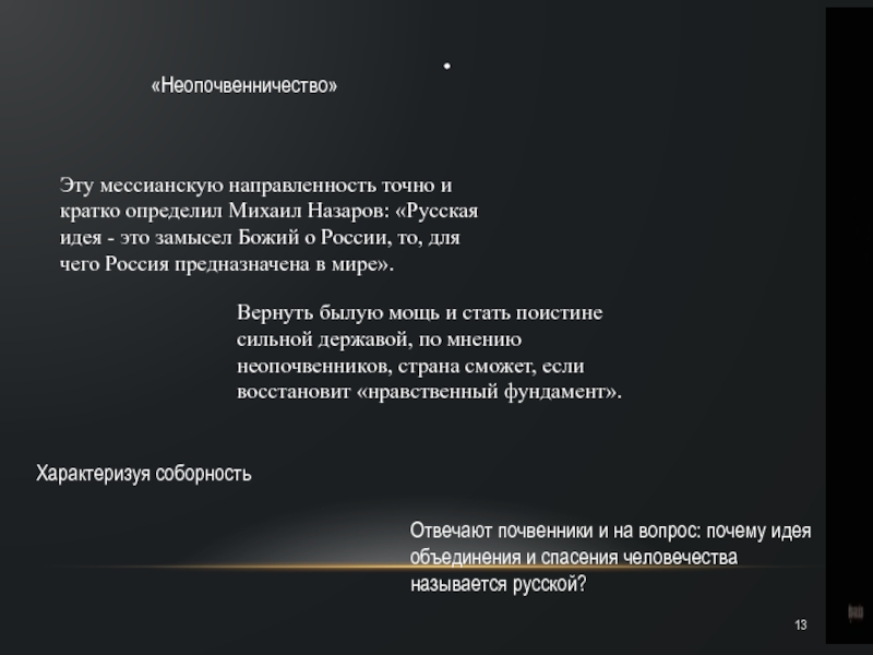 Вернуть былую мощь и стать поистине сильной державой, по мнению неопочвенников, страна сможет, если восстановит «нравственный фундамент».