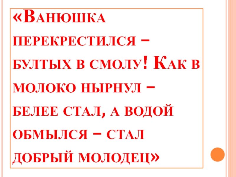 Слайд 25«Ванюшка перекрестился – бултых в смолу! Как в молоко нырнул –