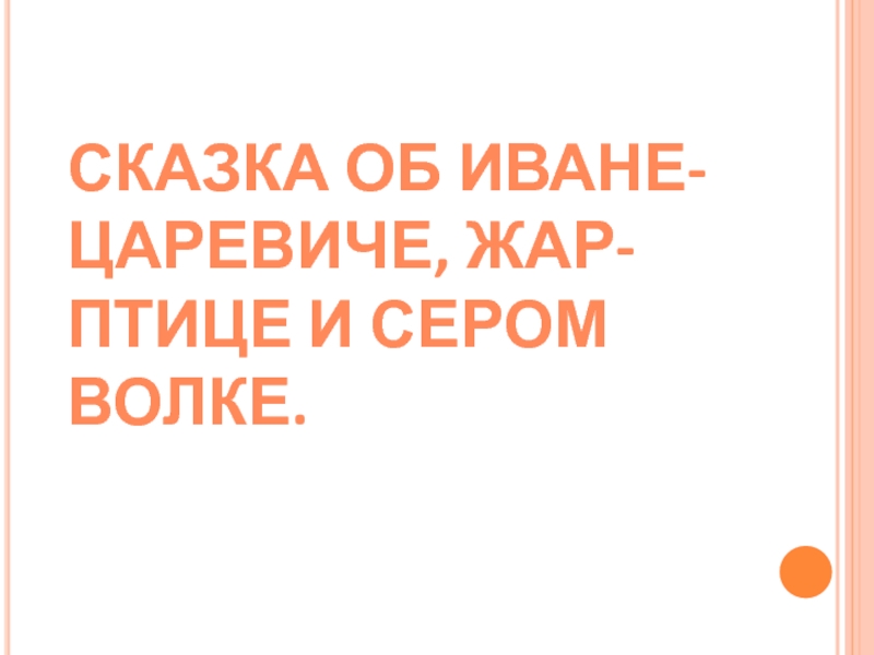 Слайд 20Сказка об Иване-царевиче, жар-птице и сером волке.