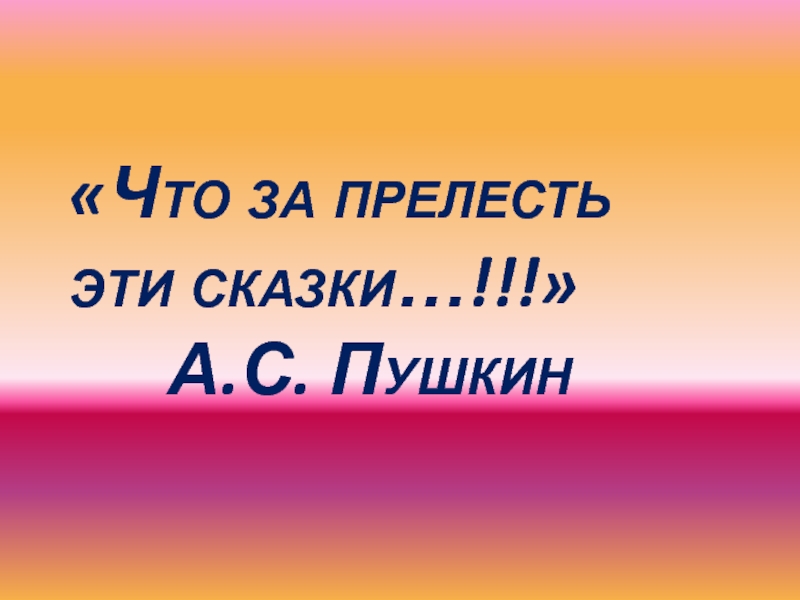 Слайд 2«Что за прелесть эти сказки…!!!» А.С. Пушкин