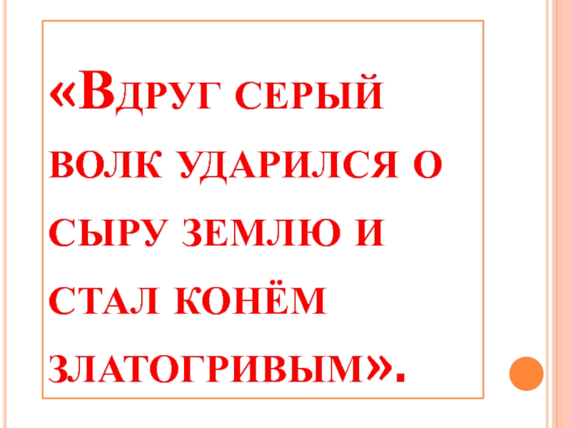 Слайд 19«Вдруг серый волк ударился о сыру землю и стал конём златогривым».