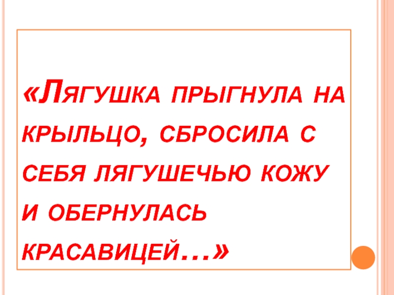 Слайд 13«Лягушка прыгнула на крыльцо, сбросила с себя лягушечью кожу и обернулась