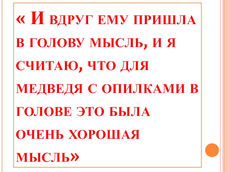 Слайд 17« И вдруг ему пришла в голову мысль, и я считаю,