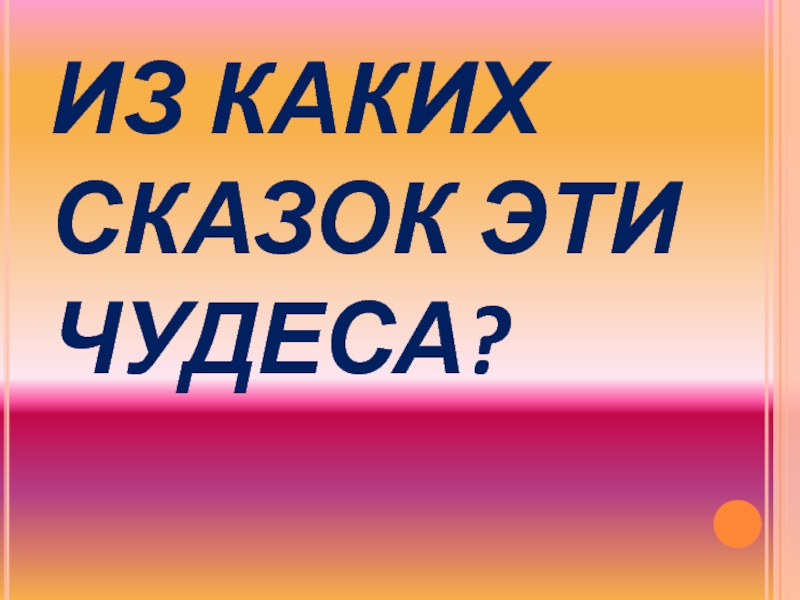Слайд 12ИЗ КАКИХ СКАЗОК ЭТИ ЧУДЕСА?