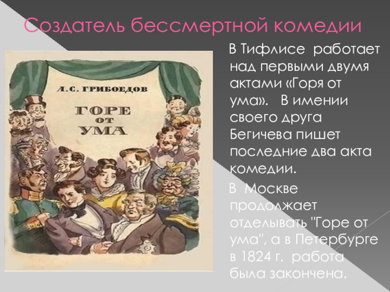 В Москве продолжает отделывать "Горе от ума", а в Петербурге в 1824 г. работа была закончена.