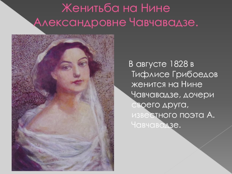 Слайд 9Женитьба на Нине Александровне Чавчавадзе.