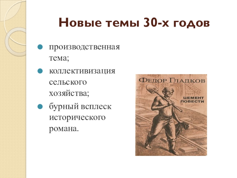 Слайд 10Новые темы 30-х годов