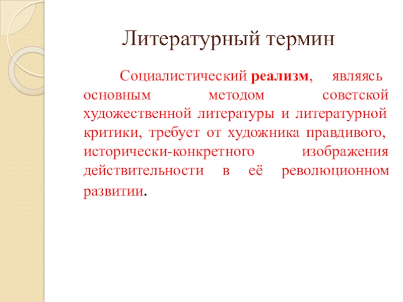 литературной критики, требует от художника правдивого, исторически-конкретного изображения действительности в её революционном развитии.
